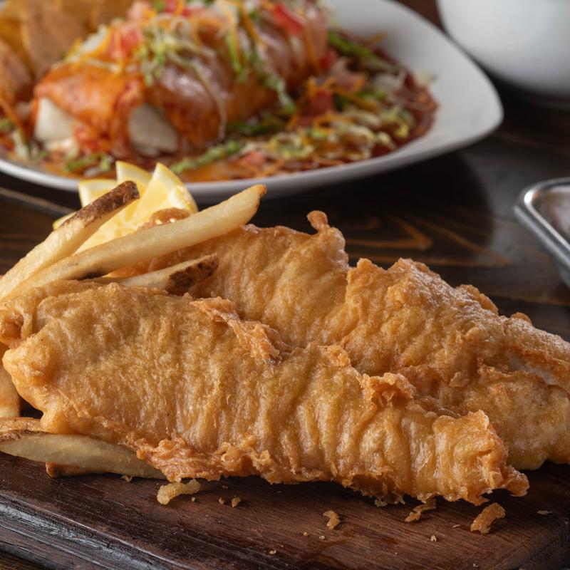 House-made beer-battered cod, 4 jumbo shrimps. Fries & slaw
