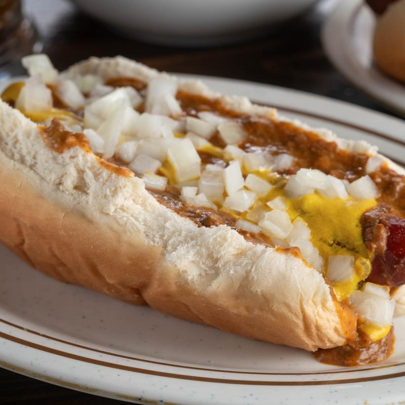 Ground beef, chili, mustard and onions, NO HOT DOG