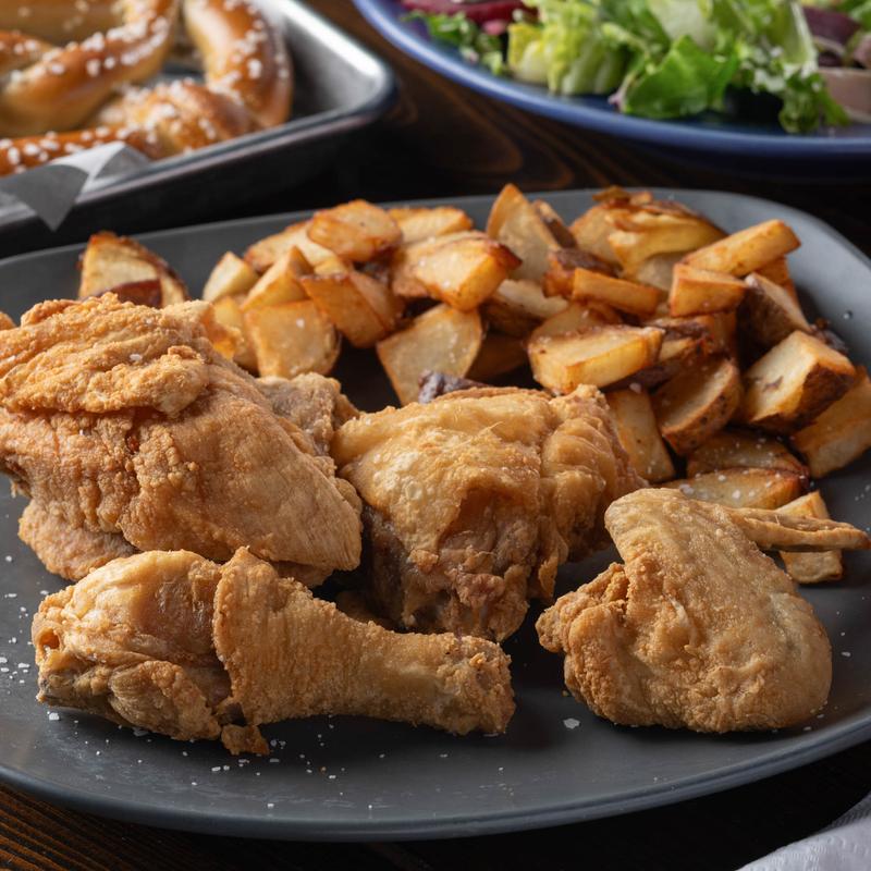 Genuine broasted chicken 4 pieces served with seasoned broasted potatoes